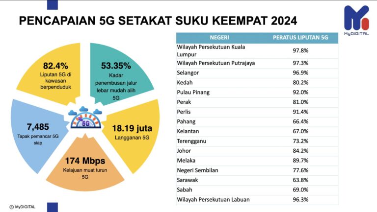 Pengguna 5G di seluruh negara sudah mencecah 53.35%, atau 18.19 juta langganan.