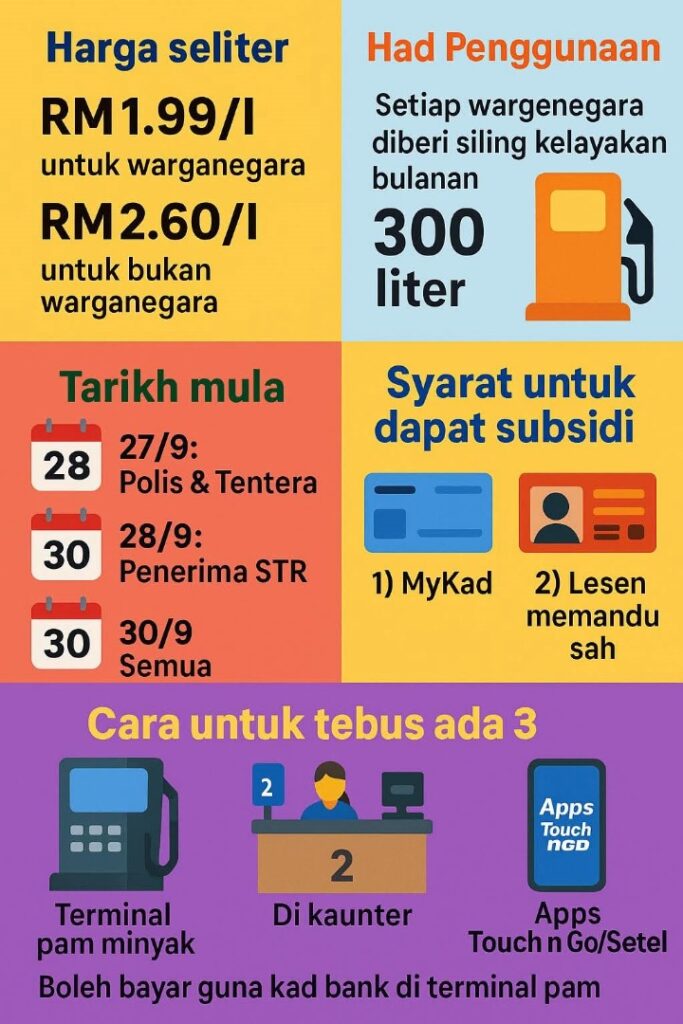 Bermula 30 September ini, seluruh rakyat Malaysia akan menikmati harga baharu RON95 pada RM1.99 seliter dengan hanya menggunakan MyKad di kaunter dan pam, atau menerusi aplikasi stesen minyak.