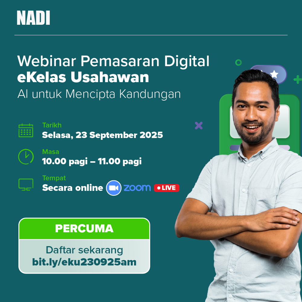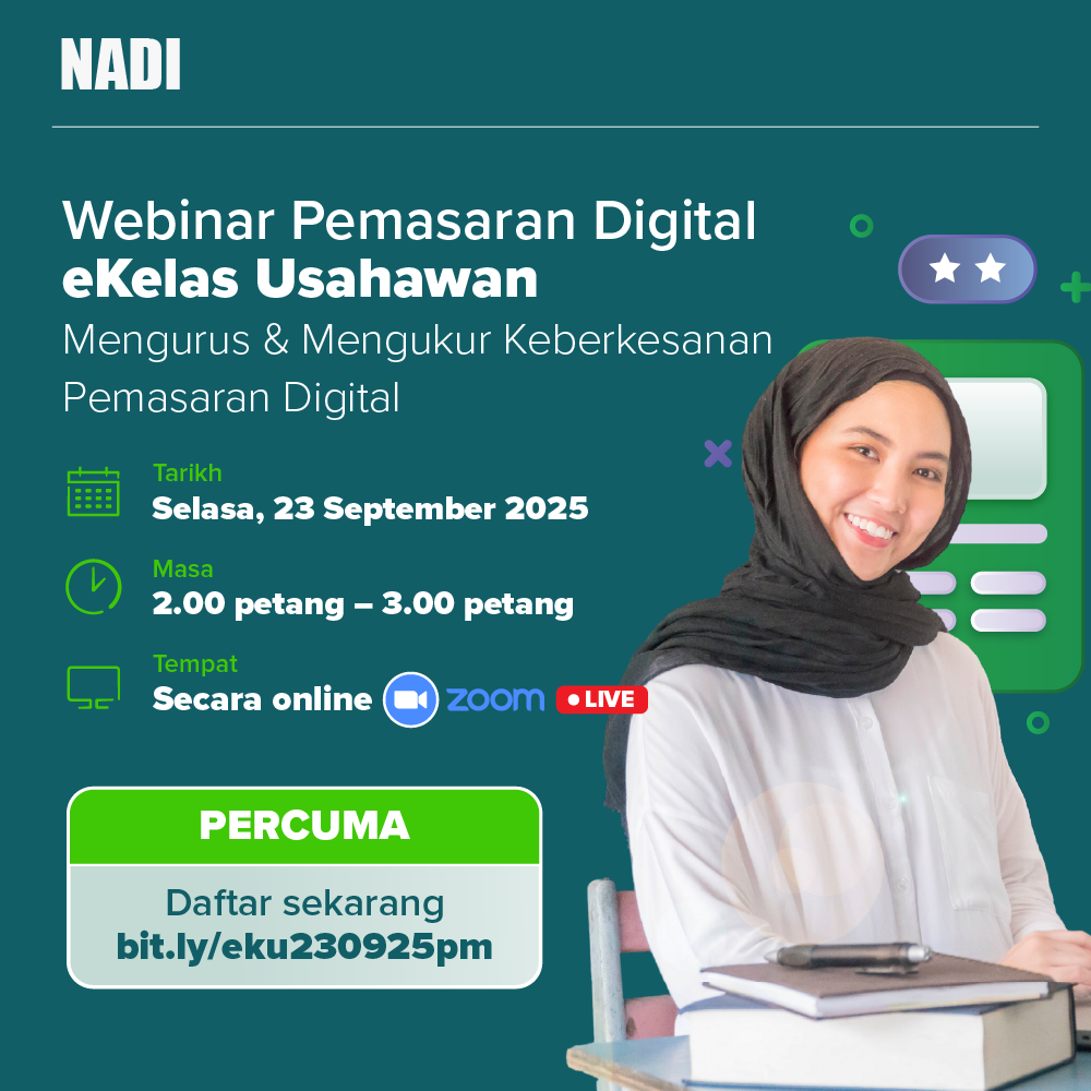 Dengan segala hormatnya, pihak kami ingin menjemput penyertaan ke Webinar NADI Nurture eKelas Usahawan – sebuah sesi dalam talian yang padat dengan ilmu praktikal dan strategi terkini dalam dunia keusahawanan digital.